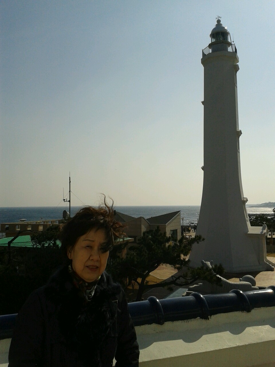 계단을 걸어 올라갔더니 공원이 만들어져 있었고, 멀리 호미곶 등대가 보였다.