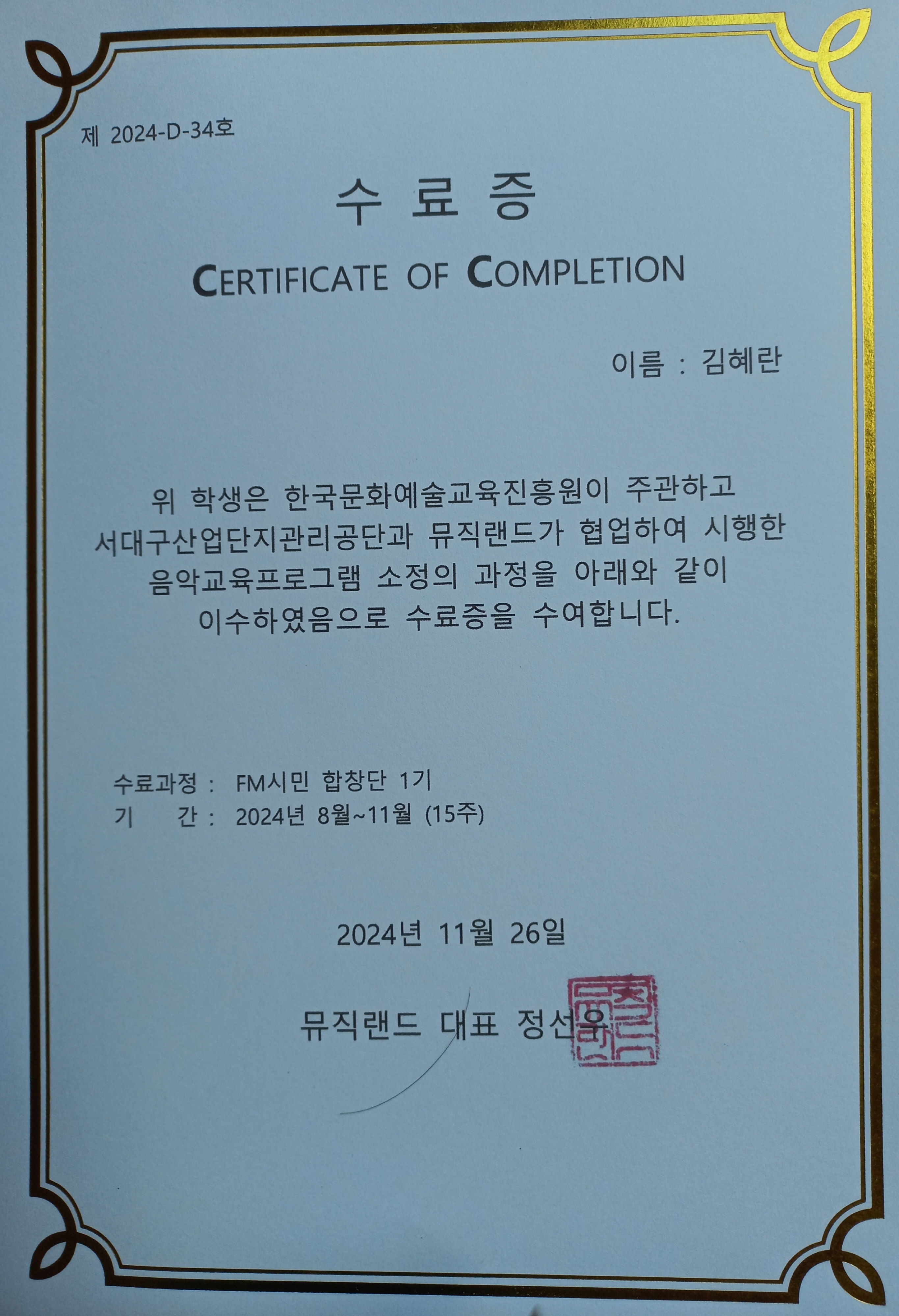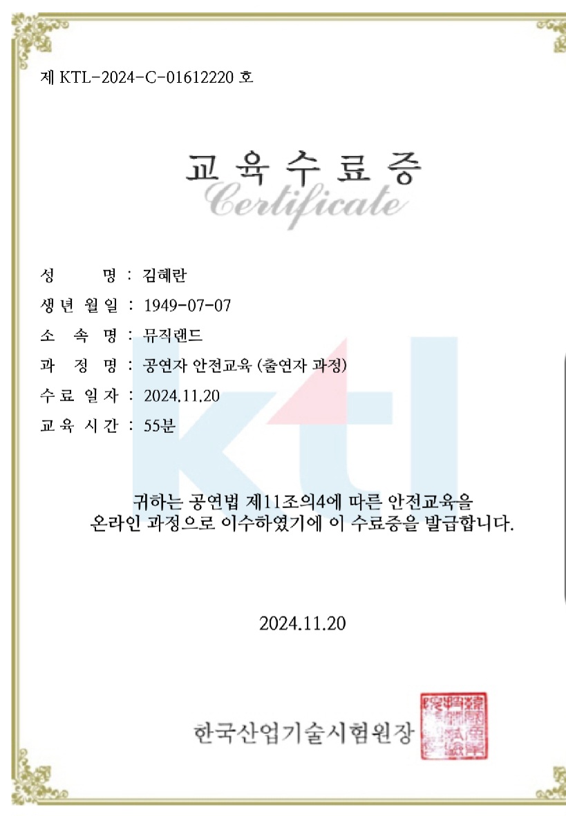 폰으로 공연장 입장 교육 수료증도 받았고....