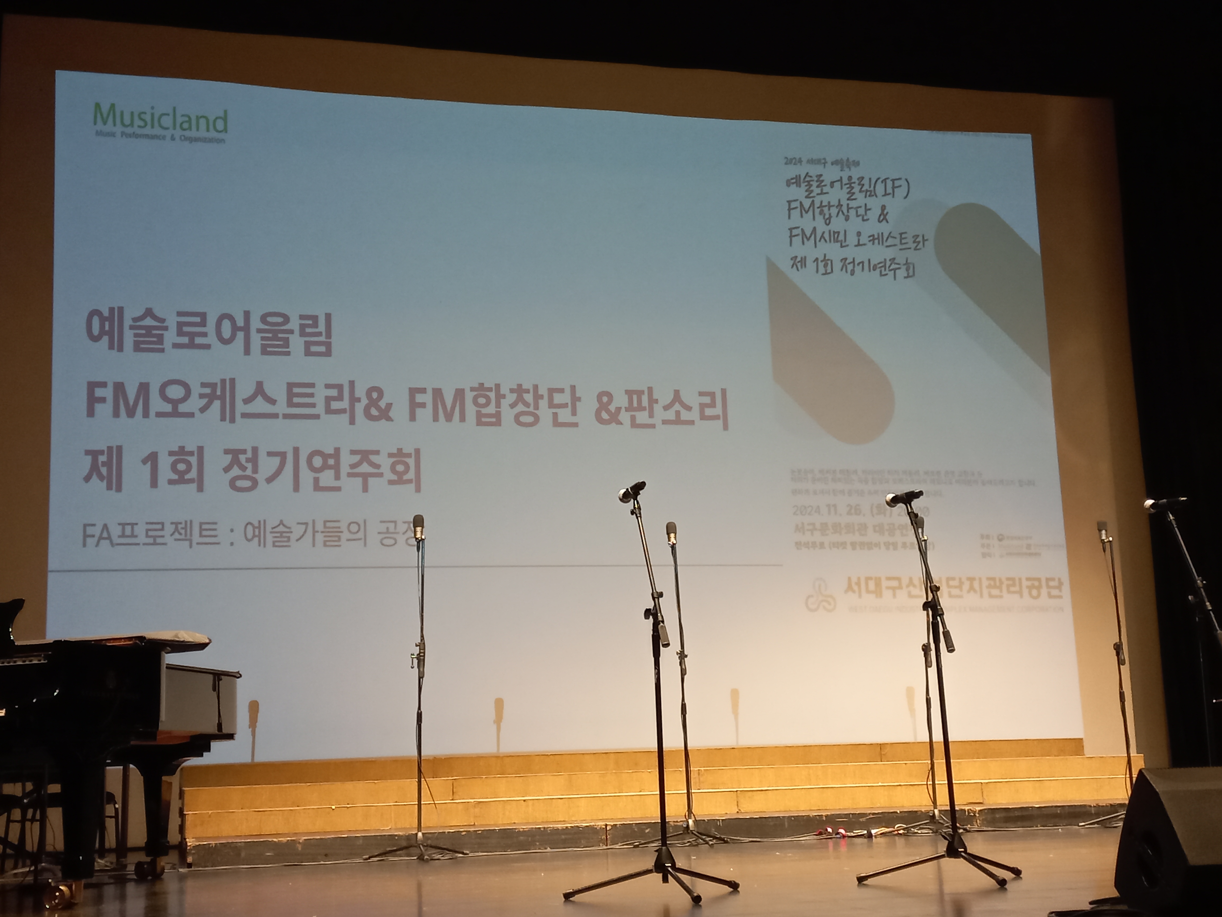 서대구 산업 단지 소속 예술로 어울림 F.M 합창단에 8월부터 매주 화요일 저녁마다 2시간씩 15주 동안 연습하러 다녔다.