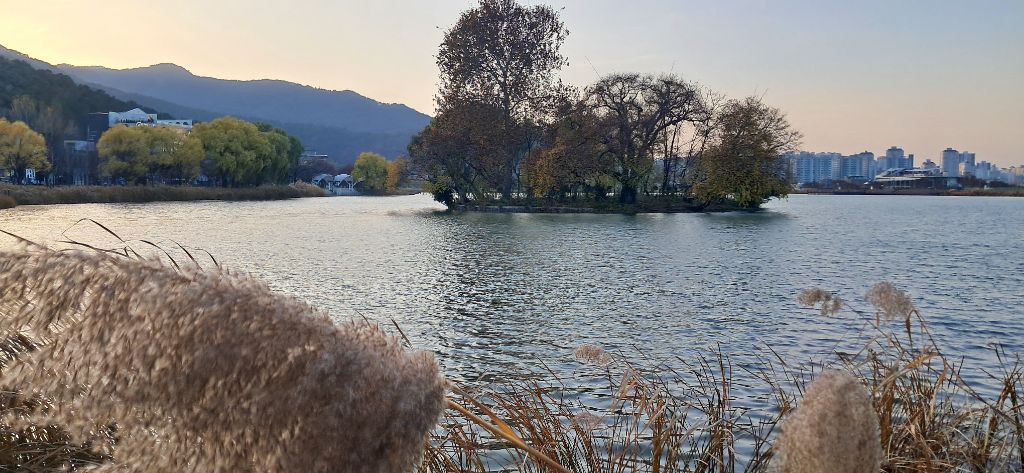 창 밖에는 수성못의 물이 조용히 흐르고 있었고...