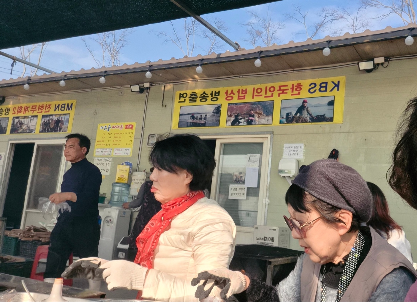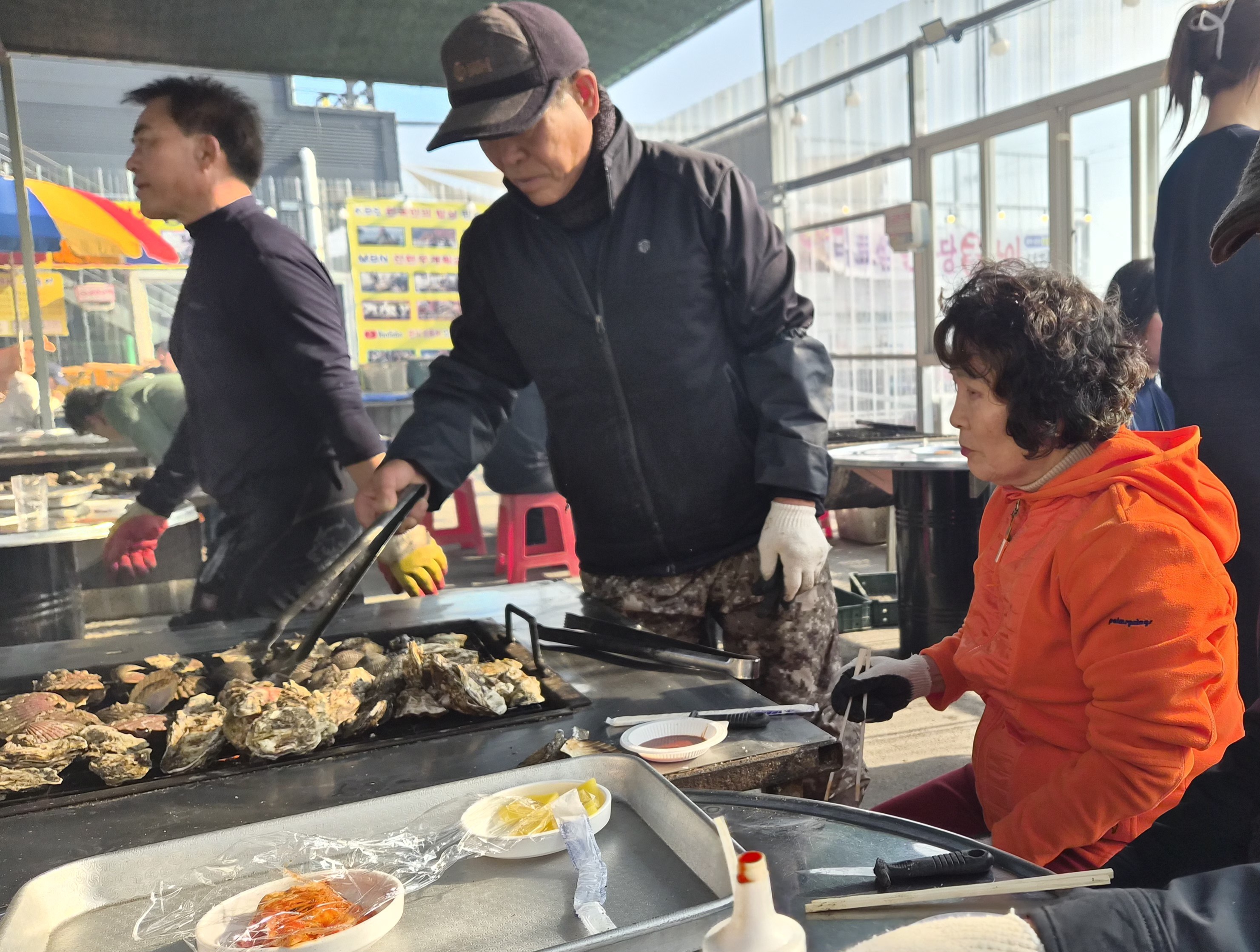 굴, 전복, 가리비, 각종 조개를 목장갑을 끼고 구워서는 눈물을 흘리면서 너무 맛있게 먹었다.